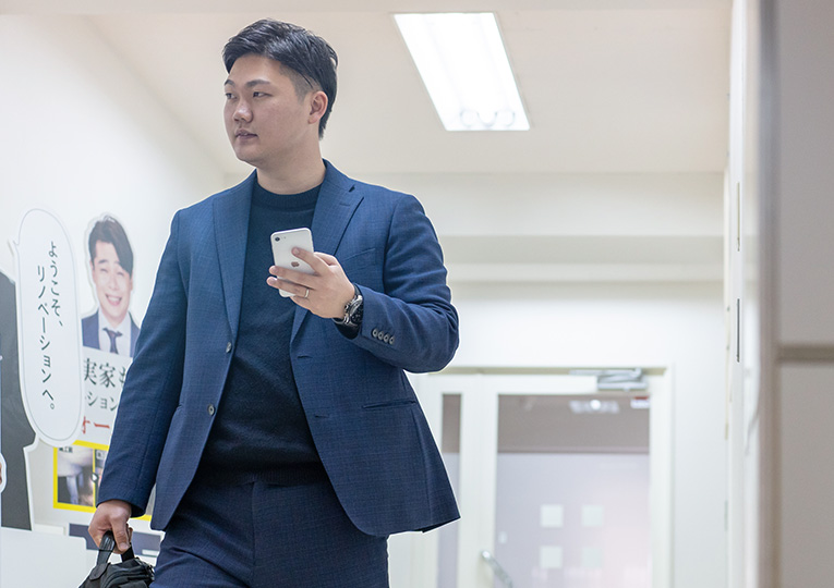 現在は、新規・既存顧客へのリフォーム提案、現場管理業務、新人育成などプランナーとして幅広く様々な業務に携わっています。 2018年に入社してから新規顧客へのリフォーム提案業務を担当し、2020年に業務統括課長へ。この時より、現場管理業務、新人育成を担当するようになり、2023年、業務統括部長を拝命し、現在に至ります。