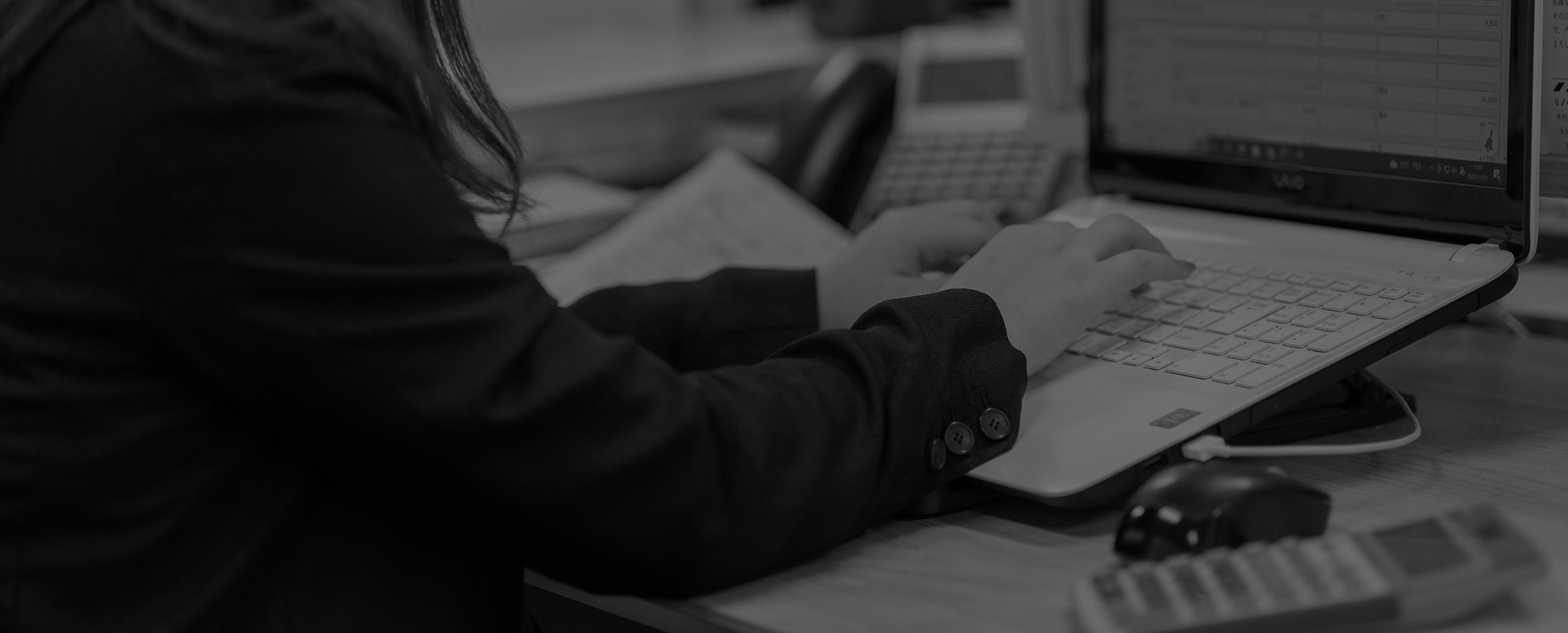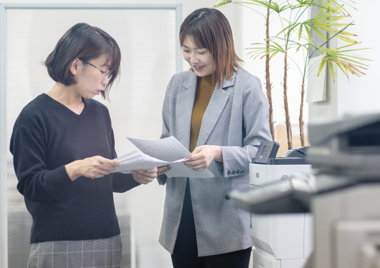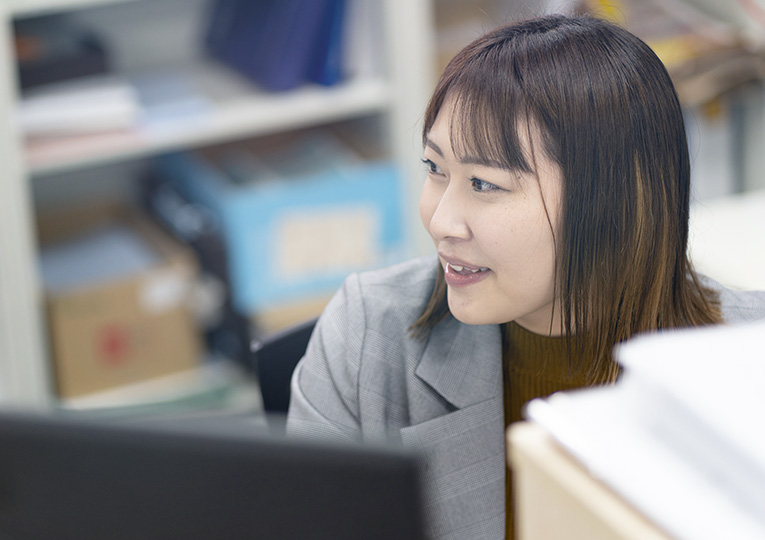 総務全般(受付、電話対応、営業アシスタント業務、発注、CG作成、書類作成、入金管理等)を担当しています。